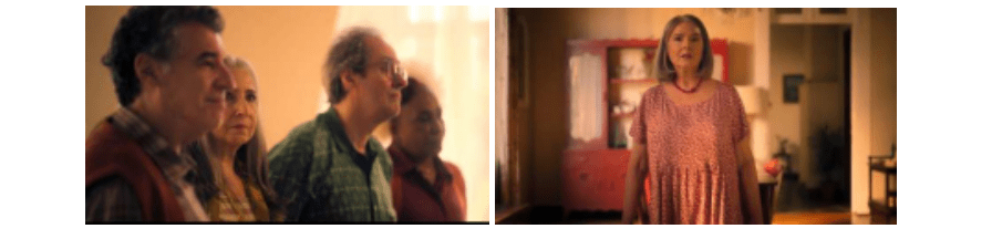 A direção de Isabel Valiante optou por enquadramentos onde os planos são mais próximos desses personagens. É uma aposta em planos que valorizam a interação entre os atores, tanto nas cenas da infância quanto nas da velhice. Nos flashbacks, há uma preferência por ângulos baixos, na altura das crianças, com foco nelas. Muitas vezes, o corpo dos adultos é cortado ou deixado fora de cena, reforçando a perspectiva infantil. Já nas cenas do presente, com os personagens idosos, a câmera raramente desperdiça a chance de focar nos rostos, buscando criar uma sensação de intimidade. Essa escolha faz sentido dentro da proposta da série: se no passado o objetivo era entender como as relações foram construídas, no presente já se trata de mergulhar na profundidade dessas conexões.