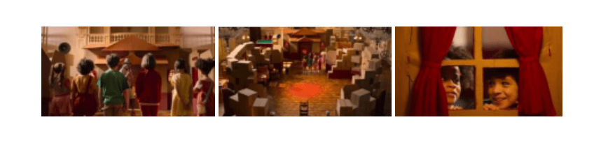 Essa dinâmica se estende a outros elementos e suas combinações. A infância dos personagens é carregada de luzes que remetem ao alegórico. A atmosfera criada em torno das crianças se dá muito pela liberdade mais artística da iluminação — algumas vezes concentrada e com tons mais fortes. Por outro lado, enquanto idosos, as cenas preferem manter a naturalidade na luz.